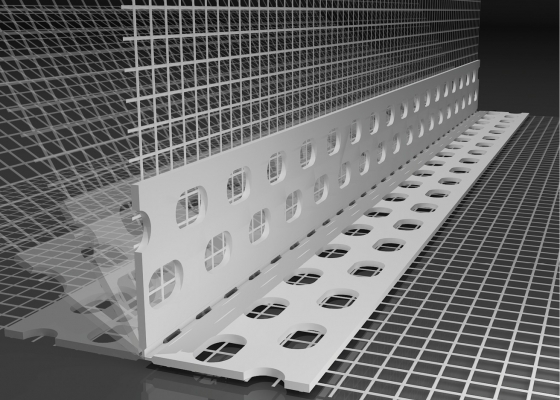Perfil de PVC com Rede Ângulo Flexível, disponível em rolos de 25ml, para reforço de Cantos, Arestas e Ombreiras com ângulo diferente a 90º.